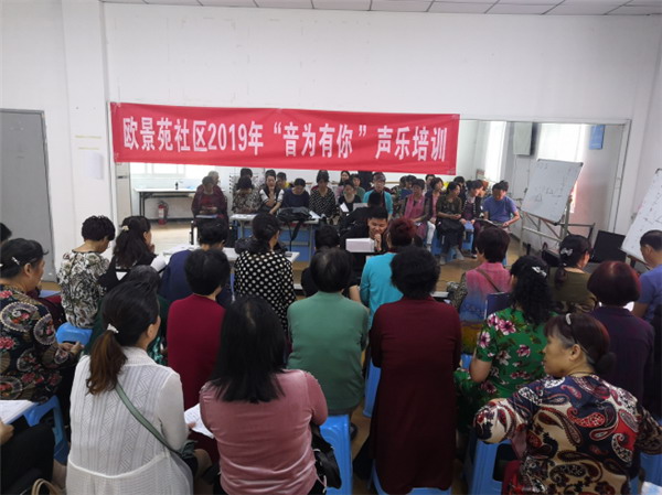 5月22日上午9點,艷陽高照,歐景苑社區開辦的“音為有你”聲樂培訓班,由專業的聲樂王老師為愛好音樂的居民們上第二節聲樂課。轄區內近30余位聲樂愛好者參與了此次課程。