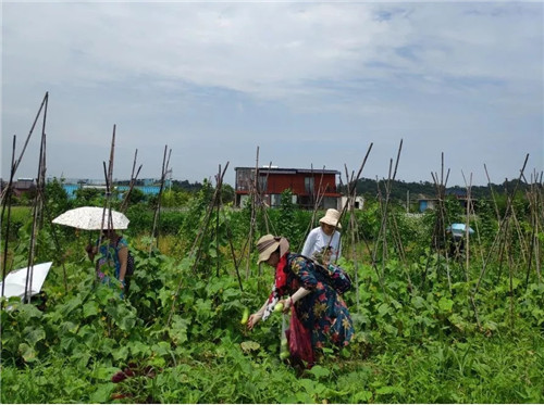 下午,馮教練帶領著居民們采摘新鮮的瓜果蔬菜,黃瓜、瓠子、馬齒莧等等,這里的農作物都是純天然無污染,吃起來非常地健康。