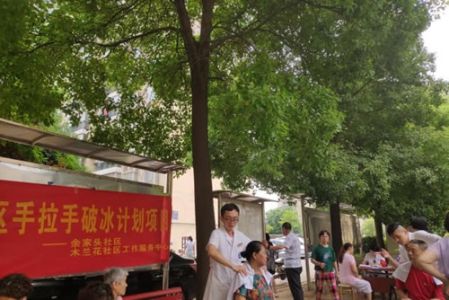7月3日上午7點半,余家頭社區(qū)舉辦的第八場免費頸肩按摩的公益活動開始了。因為配合社區(qū)“一標三實”居民信息登記錄入,把7.9日按摩茶話活動提前到3號舉辦。