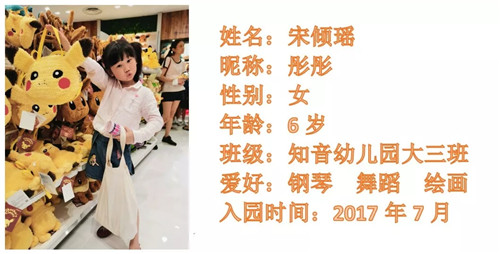 彤彤在中班的時候轉來知音幼兒園。爸爸媽媽長時間尋找新的幼兒園無果后,經朋友介紹了知音幼兒園。彤彤媽媽說,當時來知音幼兒園考察了兩次,非常滿意。除了硬件設施之外,老師們都非常年輕、熱情、有親和力。令她印象最深的是門衛和保安都非常親切熱情地和他們打招呼,這讓她第一印象特別好。