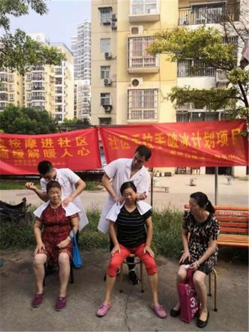 8月22日上午8點(diǎn),余家頭社區(qū)舉辦的免費(fèi)頸肩按摩的公益活動開始了。