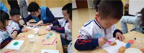 最后一個環節中,小朋友們開始自己制作面塑作品。在志愿者老師的幫助下,分別制作了屬于自己的“鎮墓獸”和“小雪人”。