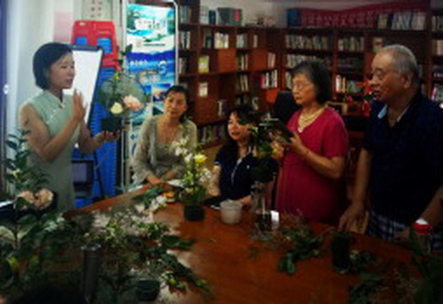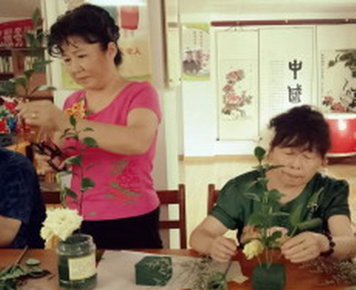 插花、掛畫、焚香、烹茶是我國的傳統四藝,透過嗅覺、味覺、觸覺與視覺品味日常生活,將日常生活提升至藝術境界,充實內在涵養與修為。在今天,由徐東路社區引進的居家養老社團特色服務項目,湖北木蘭花社會工作服務中心承接并邀請張彩云老師講課的茶藝,給居民帶來了插花的知識。
