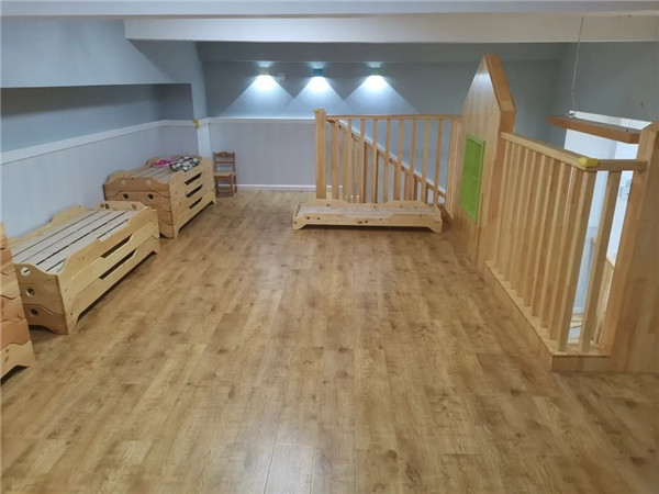 地板使用PVC地膠,有效防滑,還能減少噪音,讓寶貝們放心奔跑。白白的墻壁上是安全環保的乳膠漆,家長們不用擔心寶貝呼吸到甲醛哦。