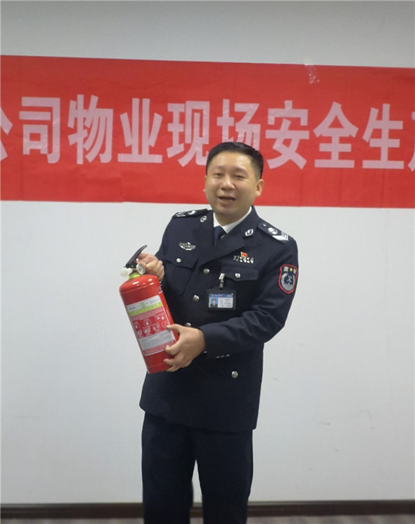 現場,熊教官講解了滅火器的使用方法及撲滅初期火災時的注意事項,隨后又仔細講解了滅火器的種類及使用場合,以干粉滅火器做演示,一看,二搖,三拔,四噴,要對準火苗的根部進行滅火。