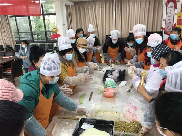 活動開始后,手工老師教授現(xiàn)場的居民制作手工窗花和“福”字臺歷,形狀各異的剪紙成品讓老人笑得合不攏嘴。接下來是“冬至五福百財餃子”環(huán)節(jié),在下沉黨員的幫助下,居民們穿戴好帽子、圍裙、袖套以及一次性手套,和老師一起熱火朝天地搟面皮、和餡料、包餃子。一屜屜包好的餃子成型后,居民們邊煮邊吃,吃著自己包的餃子,嘴里香,心里甜。