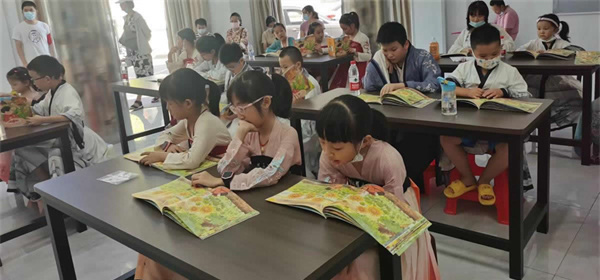 參加此次活動的青少年提前穿搭好精致的漢服,為此次活動帶來古風氛圍。在老師生動有趣的講述下,大家學習了《立秋》繪本內容,知道“啃秋瓜”“貼秋膘”和“摸秋”這些有趣的習俗?;顒蝇F場,社區工作人員還為青少年提供了美味的西瓜,一起體驗“啃秋瓜”,來消暑解熱和祈求美好祝福。