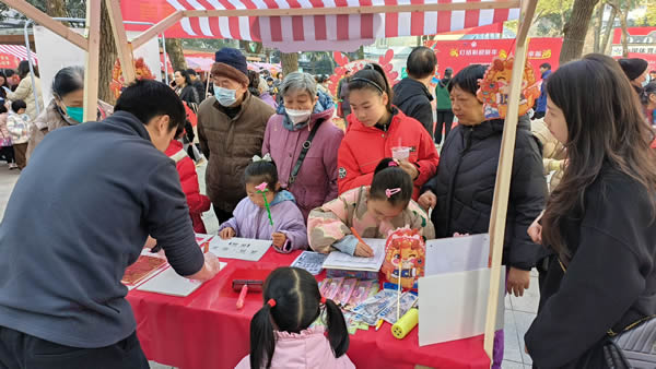 游園會主會場設置了社區慈善公益集市,為老服務區、青少年服務區、志愿服務區、互動游戲區、傳統文化區、生活服務區、醫養融合區等七大展區,為社區居民提供親子教育咨詢、兌換社區志愿服務積分、沉浸式體驗傳統文化、購置新春年貨以及義診咨詢等服務。