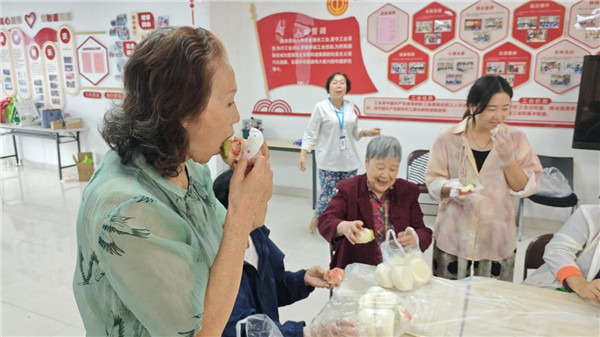 在等壽桃蒸熟的同時,宣布“銀齡守望團”志愿者服務(wù)隊正式成立,并在活動現(xiàn)場明確服務(wù)方向與目標,鼓勵老人們積極參與志愿服務(wù)。不一會,壽桃花饃蒸熟了,現(xiàn)場的張阿姨吃了一口花饃,開心的說:“在這個溫馨的重陽佳節(jié),社區(qū)組織的非遺中式面點制作活動讓我們感受到了傳統(tǒng)文化的魅力,親手制作的壽桃花饃不僅美麗寓意深遠,更讓我們找回了久違的手作樂趣。特別是‘銀齡守望團’的成立,讓我們這些退休人員有了繼續(xù)發(fā)光發(fā)熱的平臺,能為社區(qū)、為社會做點貢獻,感到非常自豪和幸福。感謝社區(qū)為我們提供了這樣一次難忘的聚會,讓我們在享受晚年生活的同時,還能傳遞愛與溫暖,這樣的活動真是暖到了我們心坎里!”