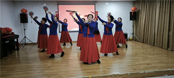 “山丹丹的那個開花呦,紅艷艷~~”隨著動聽的音樂響起,略施粉黛,統一著裝的阿姨們陸續登場,隨著音樂揮舞著手里的折扇,在空中畫出優美的弧線,臺下又響起陣陣掌聲。隨后,文娛團隊又表演了女生獨唱《你是血脈我是血》、女聲混聲合唱《深深的海洋》、男生獨唱《娥嫚》、舞蹈《千古一醉》、表演唱《龍船調》、歌舞《精忠報國》等。臺上的文娛骨干熱情洋溢的舞蹈和歌聲使這個冬季顯得溫暖又溫情。臺下壽星欣賞著大家的表演,并給予掌聲的肯定。