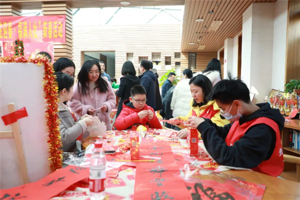 此次活動專門邀請到湖北省書法家協會原駐會副主席葛昌永和知名剪紙非遺傳承人尹東梅等大咖出席,除寫春聯、送福字外,還安排了非遺剪紙、手工DIY花燈、年畫拓印、猜謎語、游戲互動等內容,共吸引近百名職工及其子女參與。