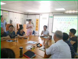 張老師首先帶領大家認識了著名綠茶“西湖龍井”,在講述了龍井的產地、制作工藝及其稀缺性之后,張老師將自己帶來的龍井茶葉讓居民們傳看,讓大家從龍井的外形、色澤、香氣等方面全方位地感知了龍井茶葉的獨特之處。